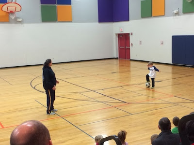 Week 1 was hard. Nolan initially didn't even want to leave my side. He was hesitant, tearful, and he did NOT want to be there. Will was adorable. He did everything he could to cheer Nolan on. Nolan eventually got out on the gym floor, but he still wasn't too sure about this soccer thing. I was really wondering if I had made a big mistake.
